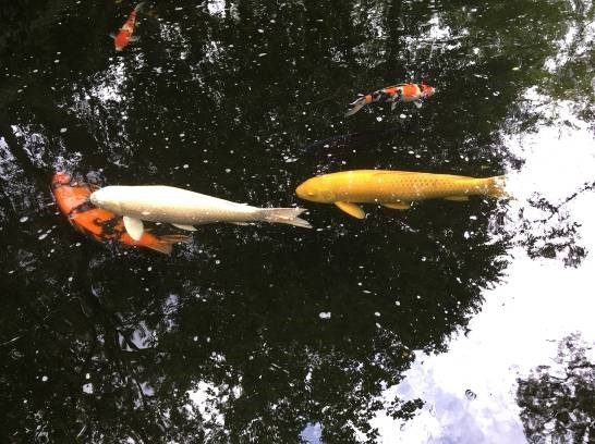 突風が吹いて紙垂が上がり、奥の庭まで眺められたり、金と銀の鯉が並んで泳ぐのに遭遇したりと、縁起の良さそうな体験もできました。