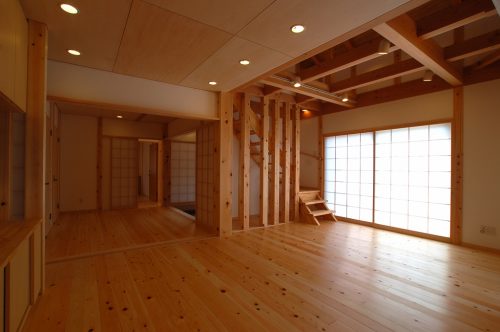 自然素材をふんだんに使った木の家、雨楽な家の施工事例