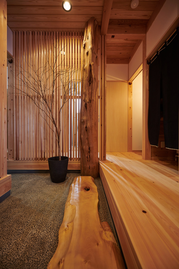 無垢の柱にインターホンを取り付けたり、桜の木をドアの取っ手にしたり、大きな流木をインテリアに生かしたり…木の家、木に囲まれる暮らしに憧れる方に、共感していただけそうなポイントが盛りだくさんの家ですよ。