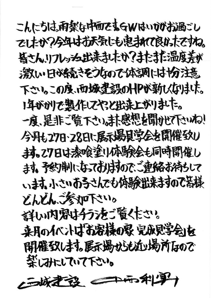 来月のイベントは「お客様の家 完成見学会」を開催致します。