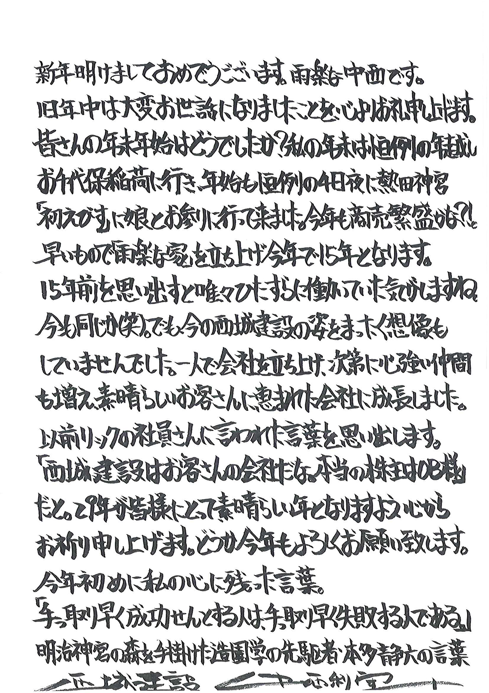 でも今の西城建設の姿を全く想像もしていませんでした。1人で会社を立ち上げ、次第に心強い仲間も増え素晴らしいお客さんに