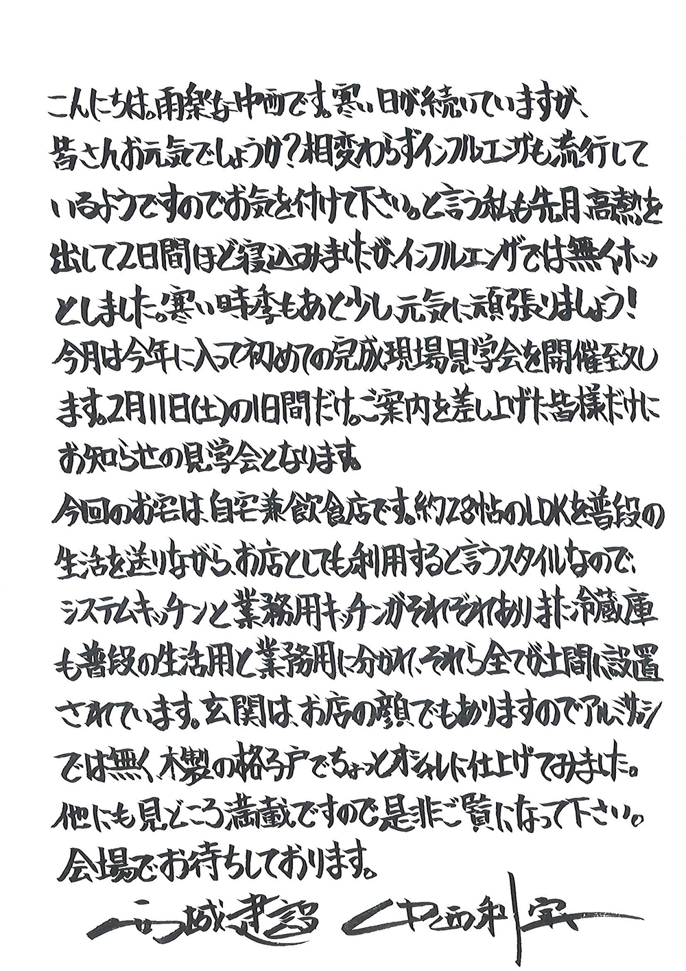 2月11日(土)の1日間だけ。ご案内を差し上げた皆様だけにお知らせの見学会となります。