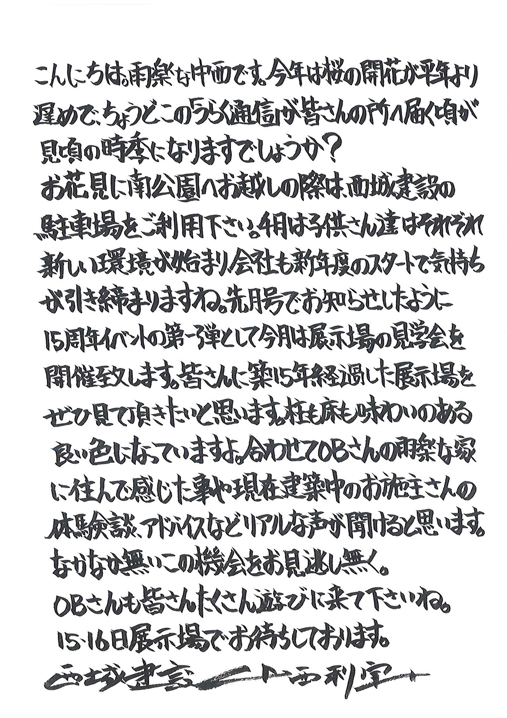 ちょうどこの「うらく通信」が皆さんの所へ届く頃が