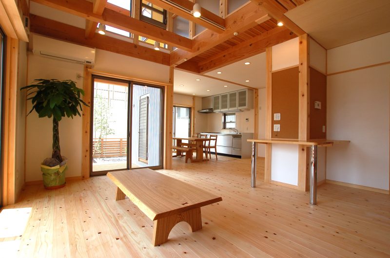 自然素材をふんだんに使った木の家「雨楽な家」。