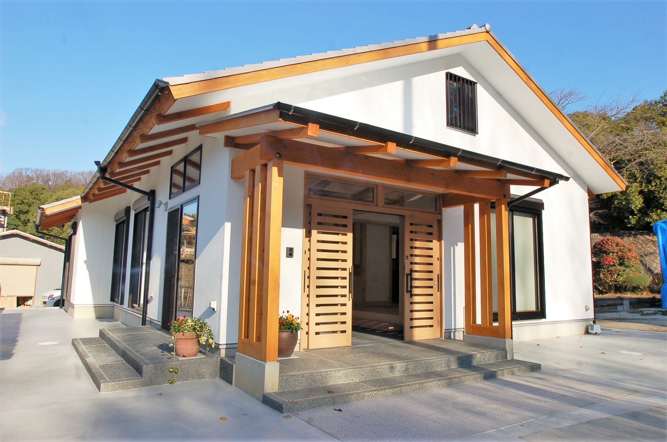 間口が広く、観音開きの引き戸の玄関が印象的なY様邸。次回はさらに内観などを詳しくご紹介していきます。