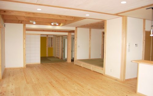 新居に暮らし初めて、居間に入ったときの広々感に、夫婦共々とても満足しています。