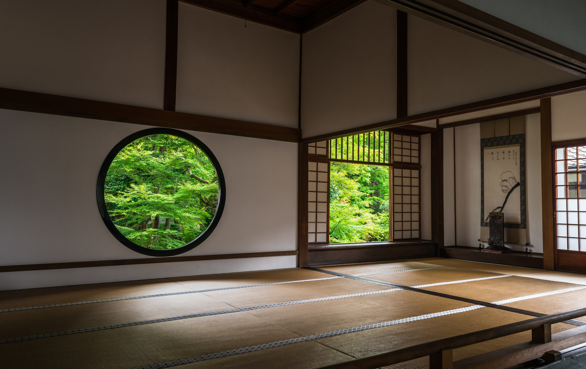 源光庵本堂にある丸い形の窓。