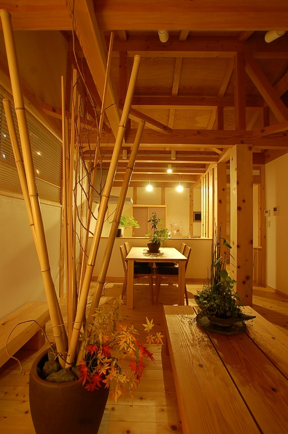 真壁や木架構構造の美しさは、日本の伝統建築そのものです。