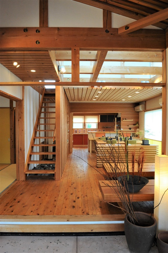 玄関を入った瞬間に感じられるヒノキの匂いは、自然素材を多用した心地よい暮らしを想像させてくれます。
