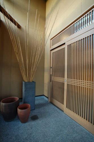 和紙を貼り分けた建具も同様で、貼り分けの高さに奥様のセンスが光ります。