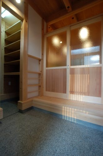 ただO様邸では、あえて北側の暗いところに玄関を配置しました。