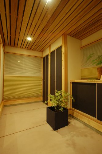玄関は北側にあります。ポーチを広くというのもO様からのご要望。キッチンとつながる勝手口もここに設けました。