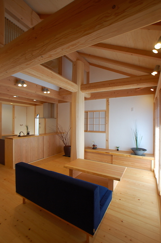 自然素材であふれた雨楽な家。無垢の柱や漆喰の壁がもたらすのは、心地よい空気と素材を肌で感じられる空間です。むき出しの自然素材と暮らすのは、真壁の家ならではの魅力とも言えるのではないでしょうか。