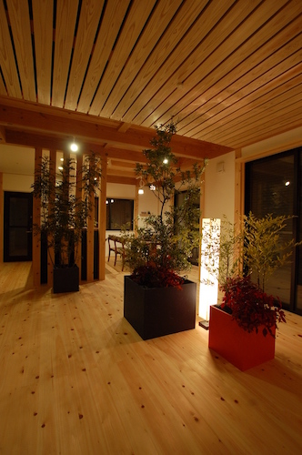 個性的な見た目で人気なのがスノコ天井です。その名の通り、スノコを天井材として使用する方法ですね。浴室や押入での使用がおなじみのスノコですが、雨楽な家では昔から天井材として用いるのが定番。清々しくてオシャレな雰囲気を醸し出してくれます。