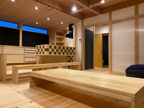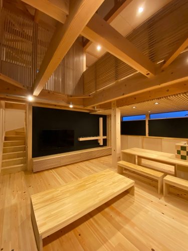 圧巻はキッチンからダイニングにかけて、6メートルにもわたる格子の天井。ここまで格子を多用したのは西城建設の歴史の中でも初めてです。ぜひ、多くの方にご覧いただければと思います!