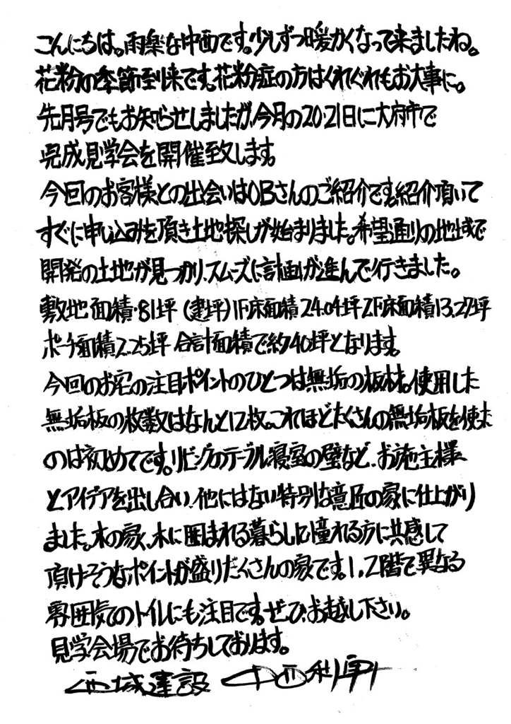 先月号でもお知らせしましたが、今月の20・21日に大府市で完成見学会を開催致します。
