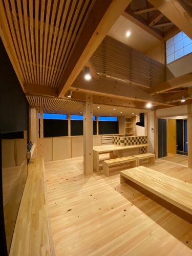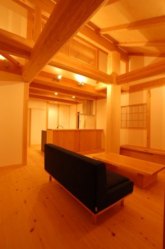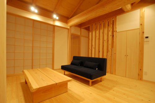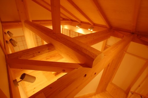西城建設の雨楽な家は、柱や床はもちろん、構造材全てに無垢の木を使い、それら全てを一切隠すことなく、
