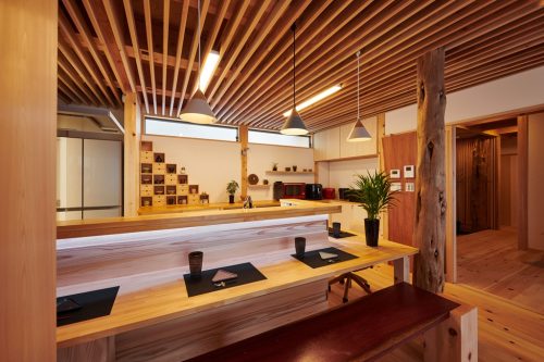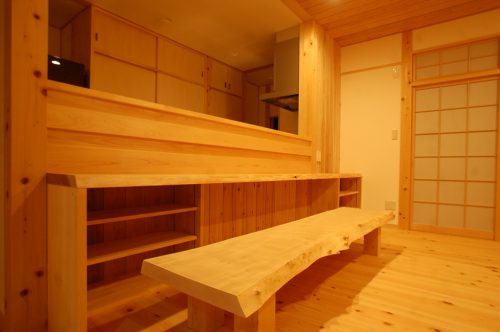無垢の杉やヒノキを使った自然素材の造作カウンターは、西城建設のお客さまからも好評です。