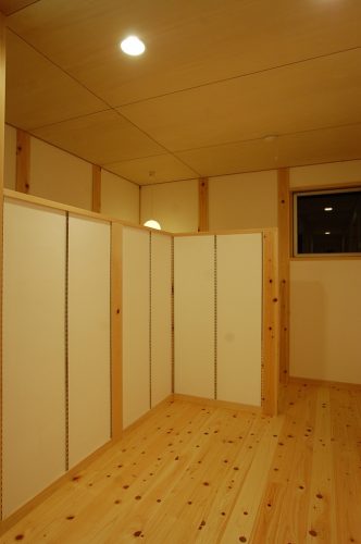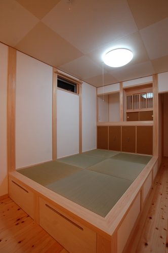 布団で寝るため、床の一部を上げて畳を敷いた寝室。小上がりによって収納スペースも確保できます。