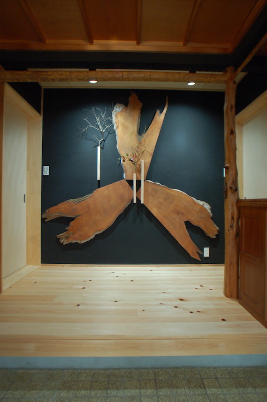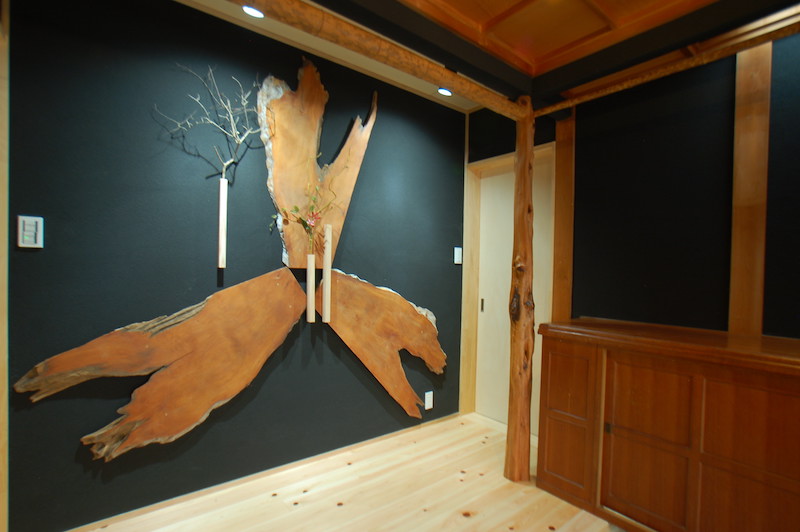 貴重な屋久杉を使った玄関ホールの装飾は、「桜の花びら」をイメージ。美しく咲く日本の春の象徴を、お客さまがデザインしました。