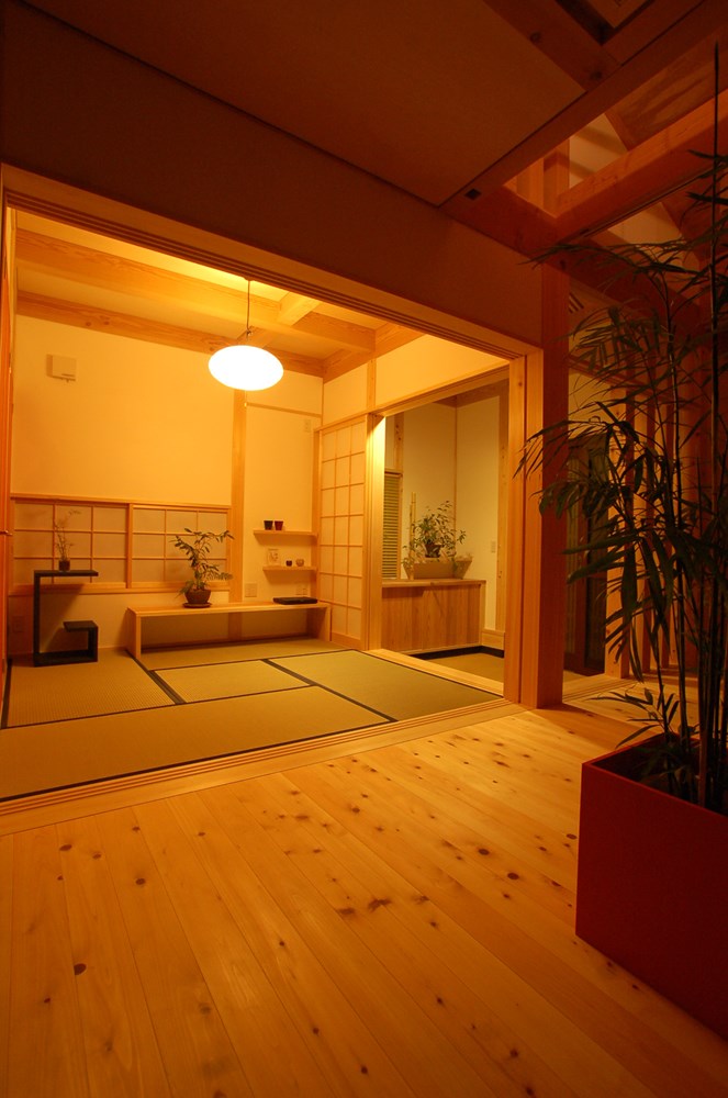 玄関の土間から続く和室。お客様をお迎えするのにも便利な憩いのスペースとしても大活躍です。