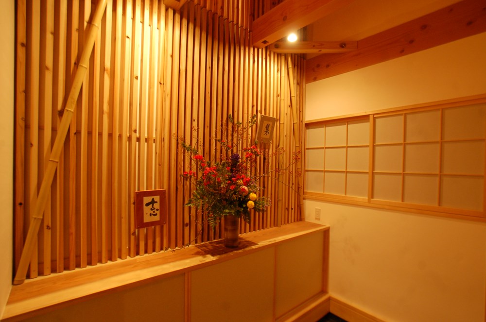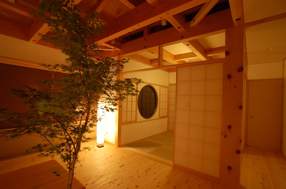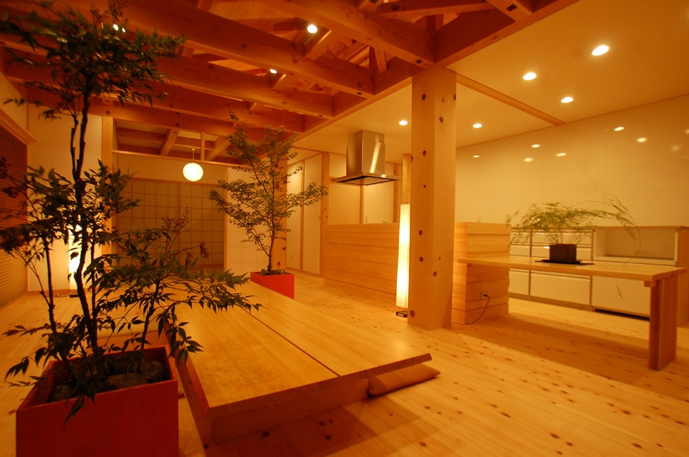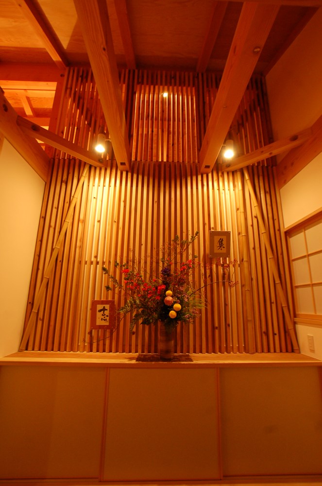 スギやヒノキ、漆喰、天然石と自然素材をふんだんに使った平屋の木の家が完成しました。